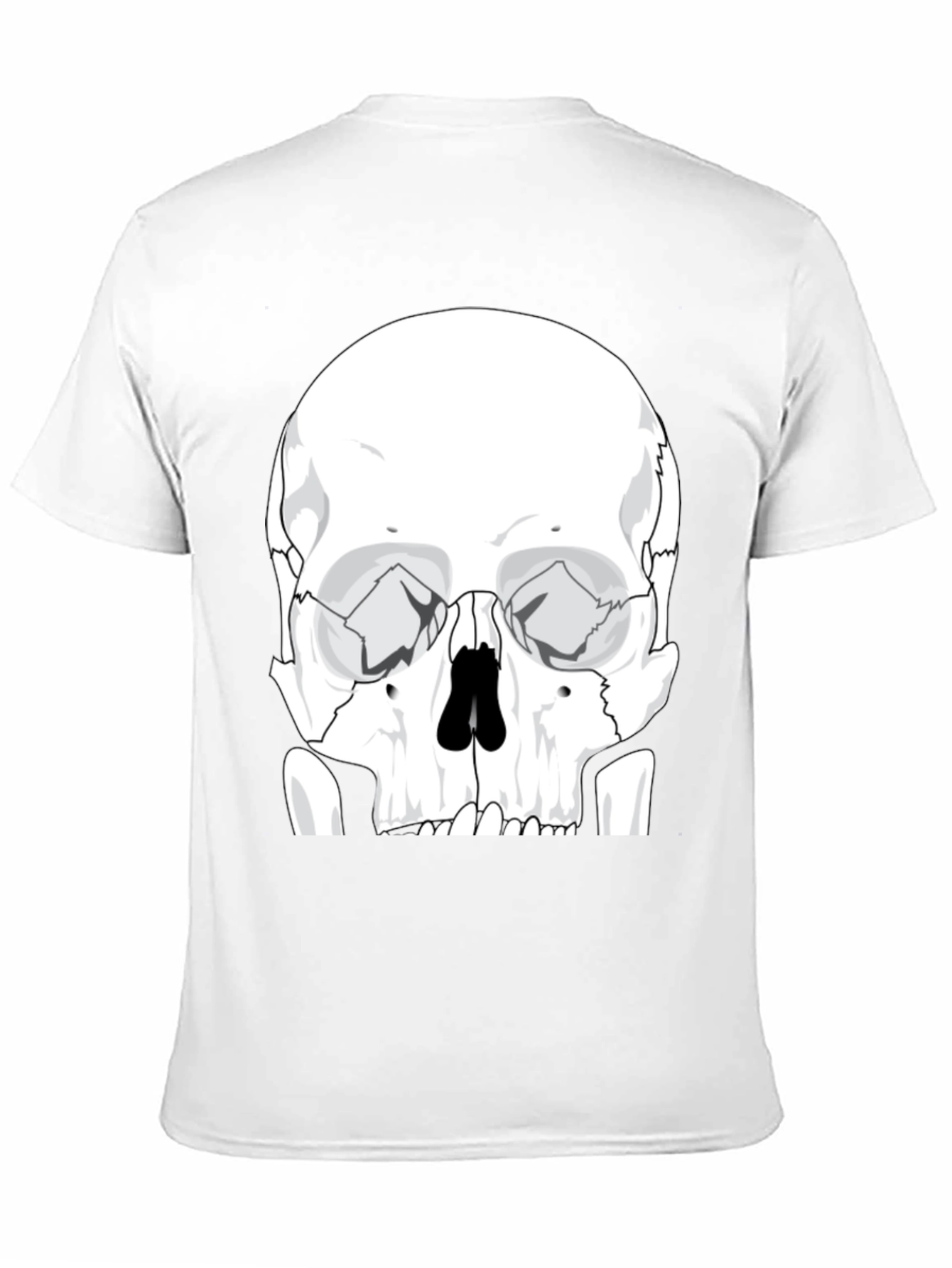 Show off your edgy style with this black t-shirt featuring a bold skull graphic. The design showcases a detailed, almost anatomically correct, white skull print that pops against the dark fabric. This tee appears to be crafted from a soft, comfortable material, perfect for everyday wear. It's an ideal choice for casual outings, concerts, or adding a touch of rebellious flair to your wardrobe. Dress it up with a jacket or keep it simple with jeans - this skull tee is sure to make a statement.