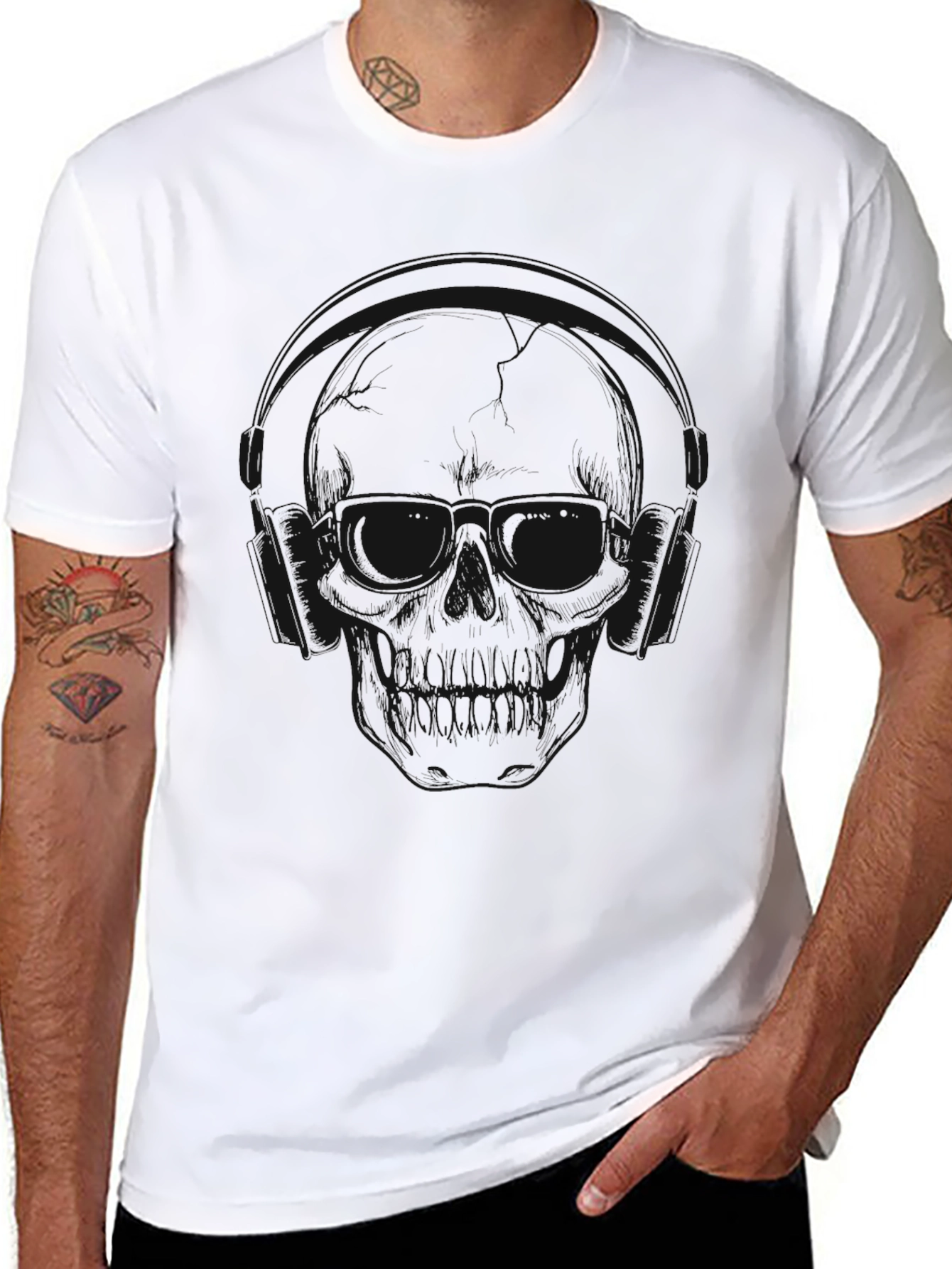 Rock your style with this cool black t-shirt. It features a subtle graphic design of a skull wearing headphones. Made from a soft, comfortable fabric, this tee is perfect for everyday wear. The classic fit makes it easy to pair with jeans, shorts, or your favorite bottoms. Ideal for music lovers and anyone with an edgy sense of style. Upgrade your wardrobe with this standout piece that's sure to turn heads. A must-have for casual outings, concerts, or simply lounging at home.