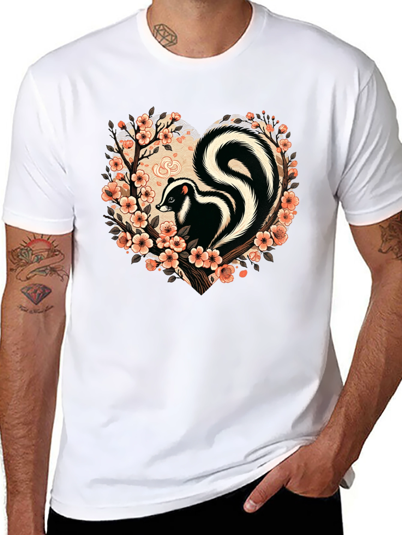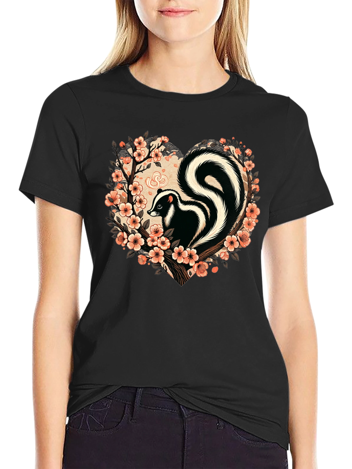 Skunk Floral Heart T-Shirt - Stylish Animal Tee