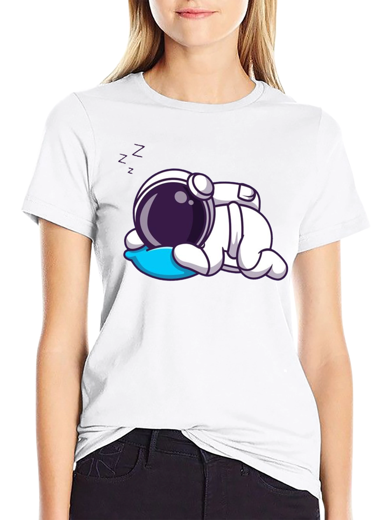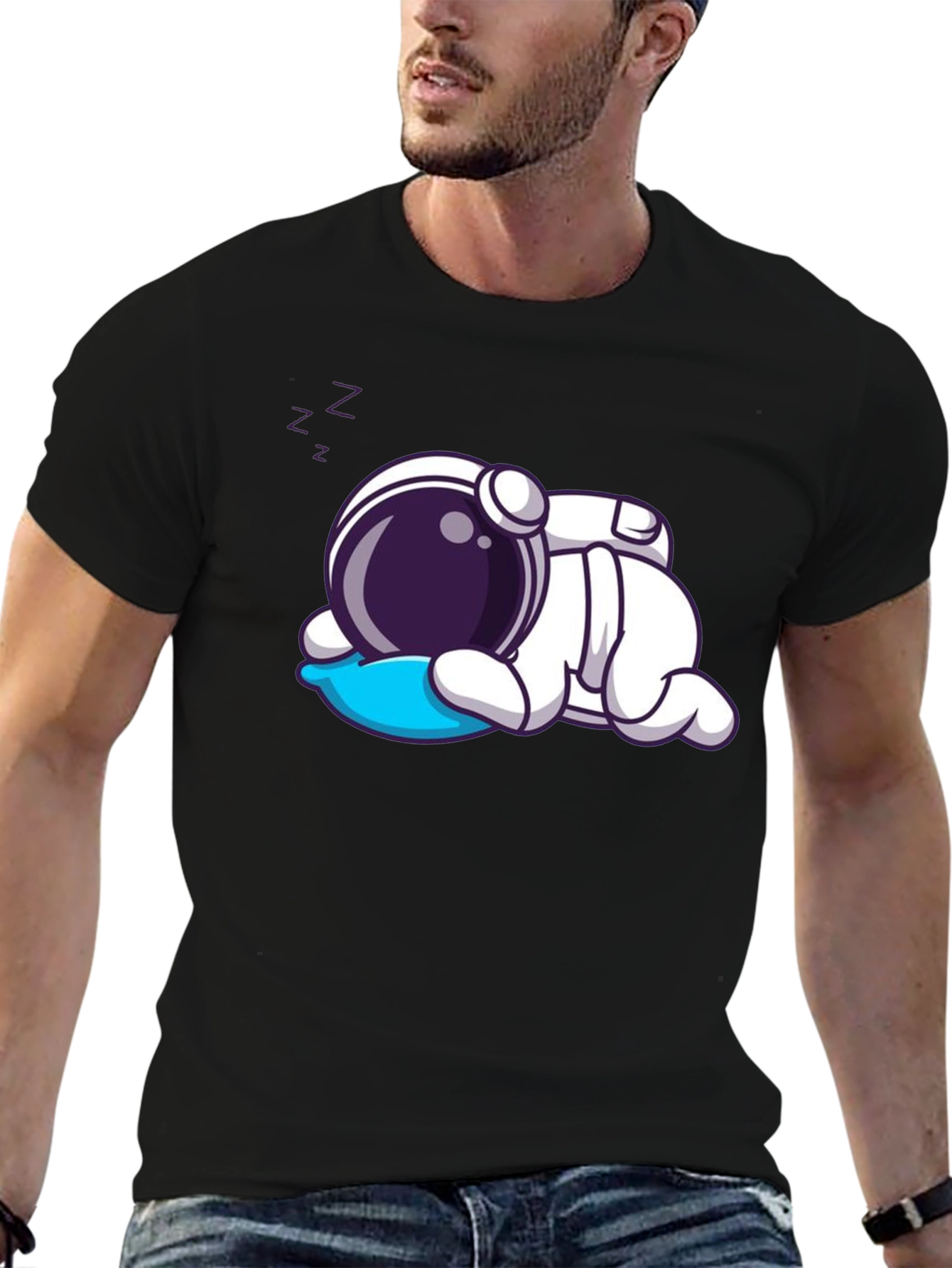 Show off your love for space with this unique graphic tee! The shirt features a cartoon-style astronaut peacefully sleeping on a blue pillow, adding a touch of whimsy to your wardrobe. Made from comfortable, breathable fabric, this t-shirt is perfect for everyday wear. The design is eye-catching and conversation-starting, making it ideal for casual outings, lounging at home, or expressing your personality. Pair it with jeans, shorts, or joggers for a relaxed and stylish look. It's a great gift for space enthusiasts and anyone who enjoys fun, quirky designs!