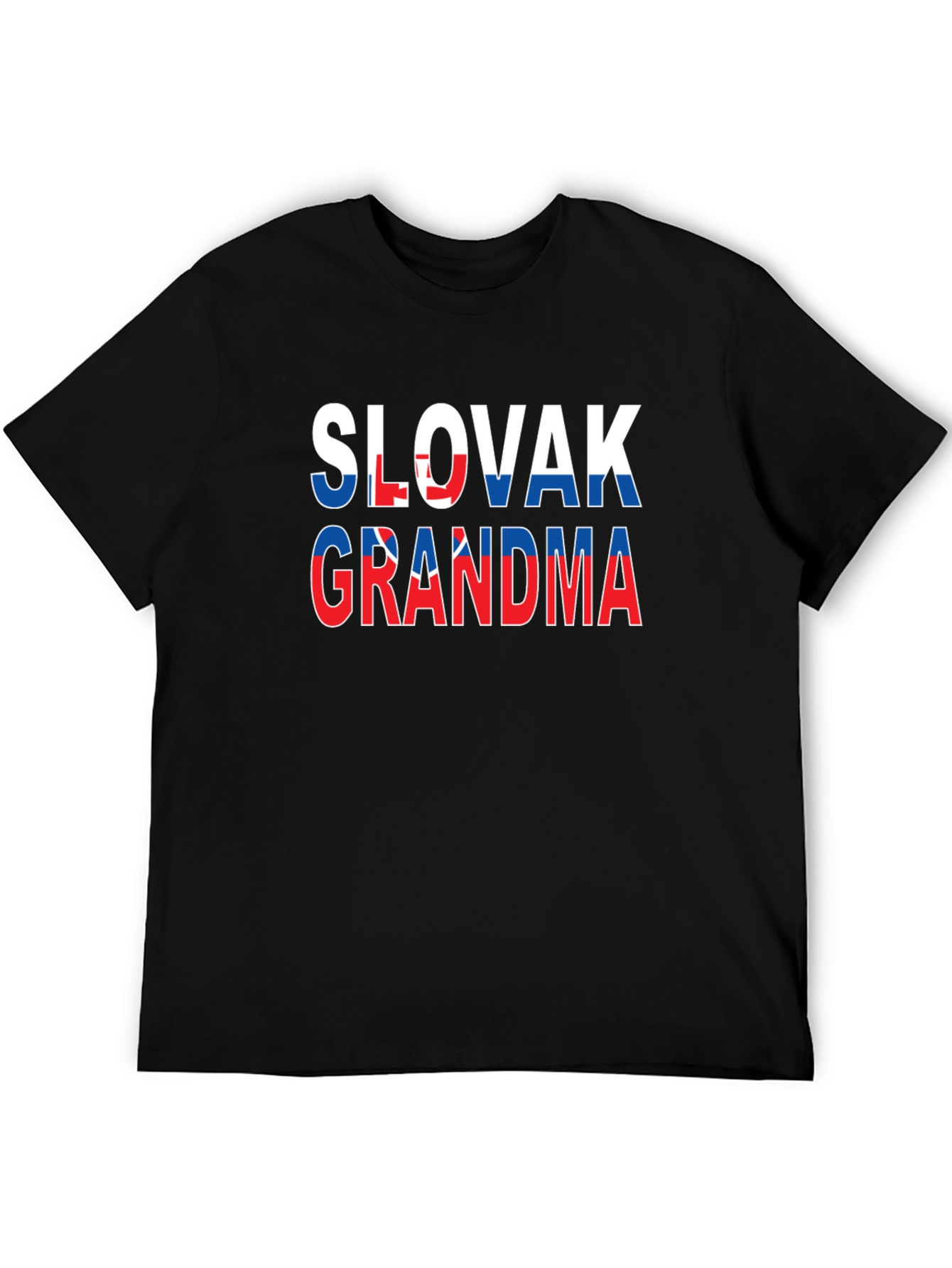 Showcase your heritage with this eye-catching 'Slovak Grandma' graphic tee. The design features bold, white letters with a unique fill pattern suggesting Slovakian flag colors. Made from a comfortable, dark fabric, this tee is perfect for casual wear, family gatherings, or celebrating your Slovak roots. The classic crew neck and short sleeve design make it a versatile addition to any wardrobe. Wear it with pride and let everyone know you've got the best Slovak Grandma around!