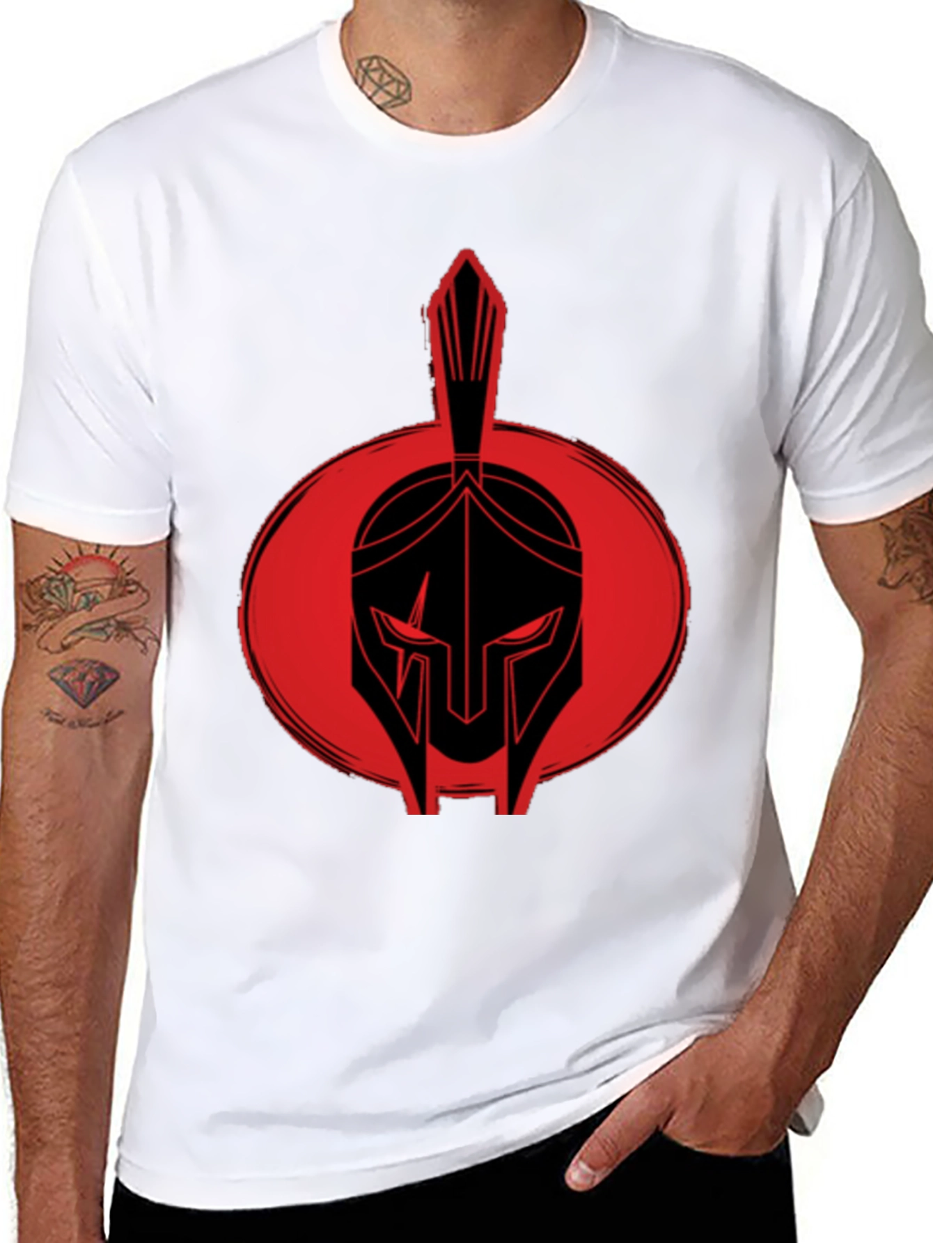 Showcase your warrior spirit with this striking black t-shirt featuring a bold red Spartan helmet graphic. The stylized design is printed on a soft, comfortable fabric, perfect for everyday wear. The eye-catching helmet motif embodies strength and resilience, making a powerful statement. Ideal for casual outings, gym sessions, or as a unique gift for history enthusiasts and fans of ancient cultures. This tee combines style and comfort, ensuring you look and feel great wherever you go. Upgrade your wardrobe with this unique and inspiring garment today!