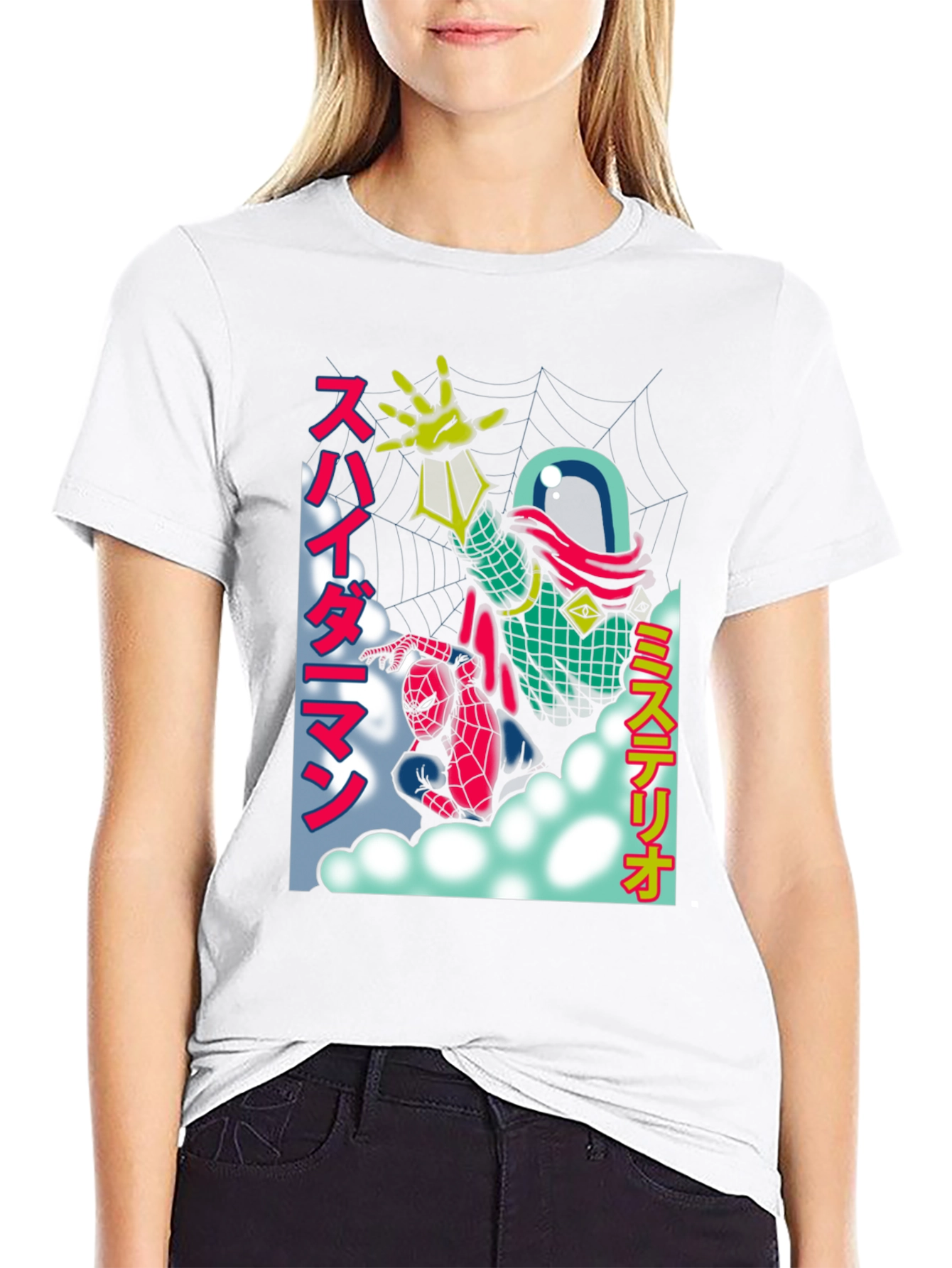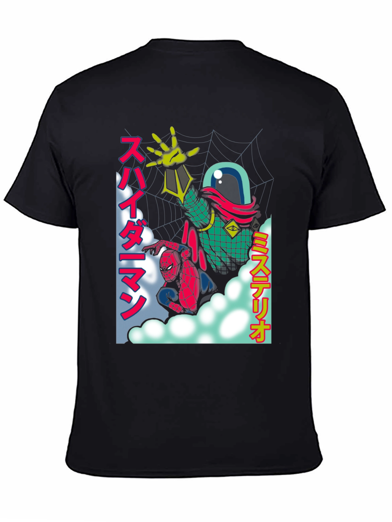 Embrace your inner superhero with this stylish Spider-Man t-shirt! Featuring a unique retro anime design showcasing Spider-Man and Mysterio. The graphic is a vibrant mix of colors and Japanese text. Made from a soft, breathable fabric, this t-shirt offers all-day comfort. Perfect for casual wear, comic conventions, or as a standout piece in your wardrobe. Show off your love for Spider-Man with this eye-catching and comfortable tee!
