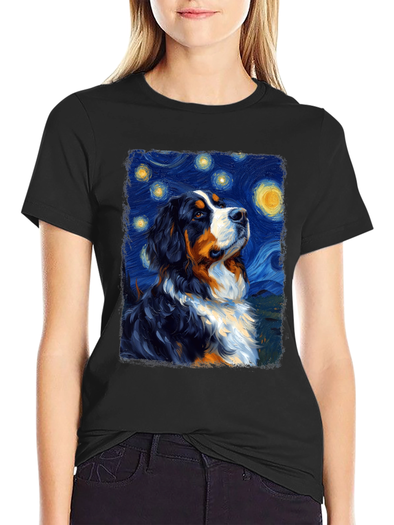 Starry Night Dog T-Shirt - Bernese Mountain Dog Art