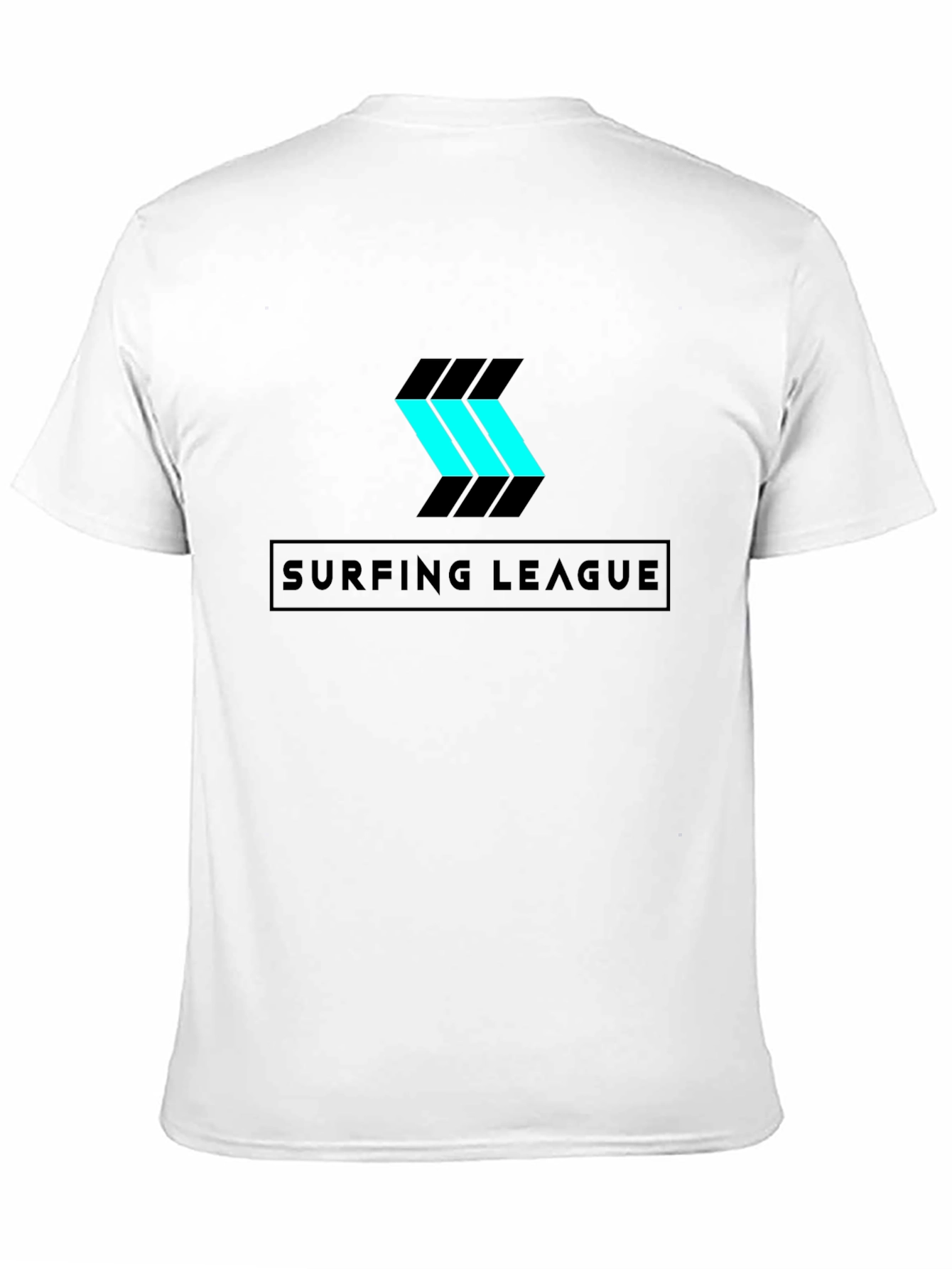 Showcase your love for surfing with this stylish black T-shirt. The tee features a unique, modern logo with a black and aqua design. 'Surfing League' text is printed in a simple block font just below the logo. The shirt appears to be made from a soft and comfortable fabric, perfect for everyday wear. This tee is ideal for casual outings, beach trips, or simply expressing your passion for surfing. A great addition to any surfer's wardrobe!