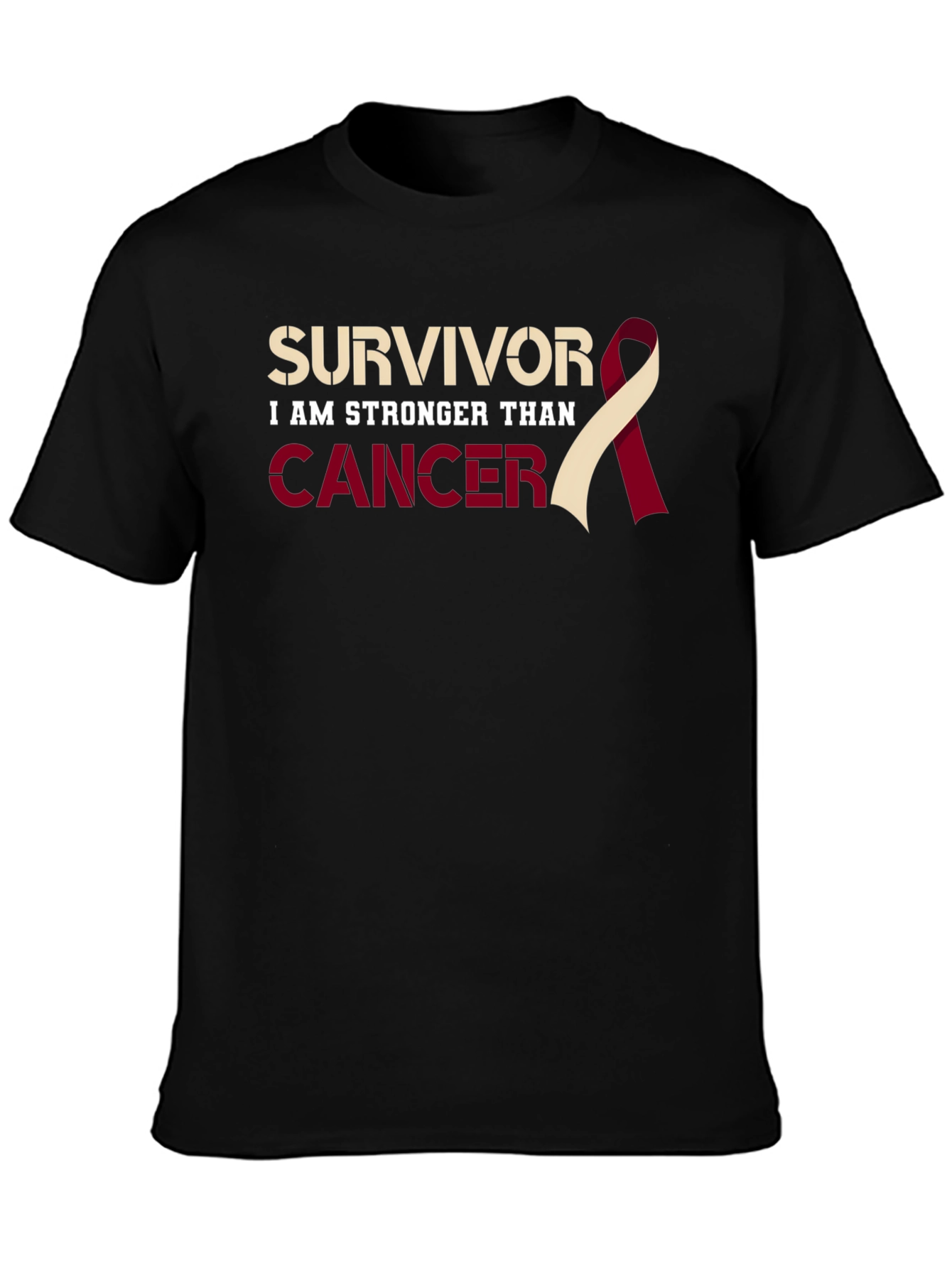 Show your support and strength with this powerful 'Survivor I am Stronger Than Cancer' t-shirt. This black tee features a impactful design with bold text and a symbolic awareness ribbon. Made from a soft, comfortable fabric, it's perfect for everyday wear, awareness walks, or as a meaningful gift for a cancer survivor or supporter. Let this shirt be a statement of hope, resilience, and unwavering determination in the fight against cancer. Wear your strength proudly!