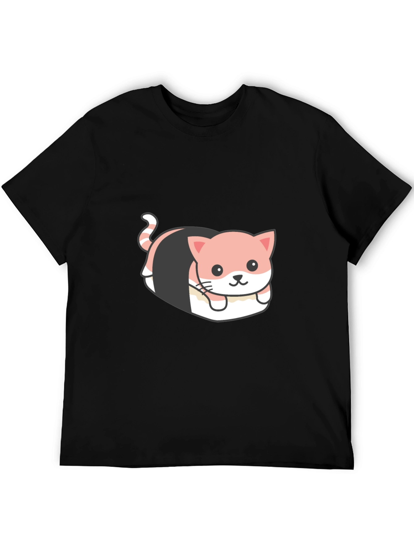 This black t-shirt features a cute and humorous graphic of a cat designed to look like a piece of sushi. The playful image is ideal for cat lovers, sushi enthusiasts, or anyone who enjoys unique and eye-catching apparel. Made from a comfortable, breathable fabric, this tee is perfect for everyday wear, casual outings, or as a fun conversation starter. The design is printed with high-quality inks, ensuring vibrant colors and long-lasting durability. Express your fun side with this standout sushi cat tee!