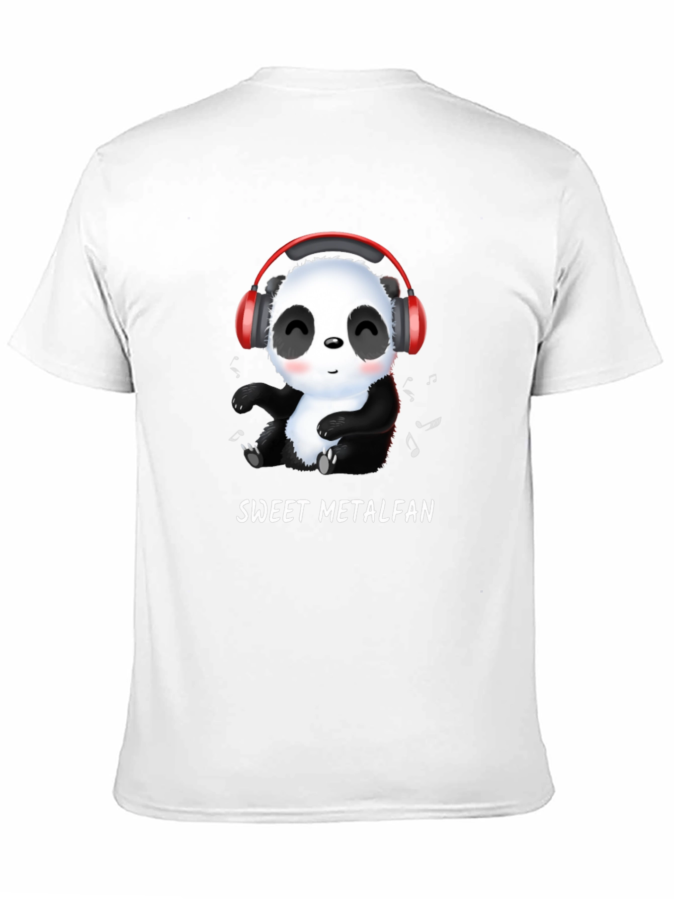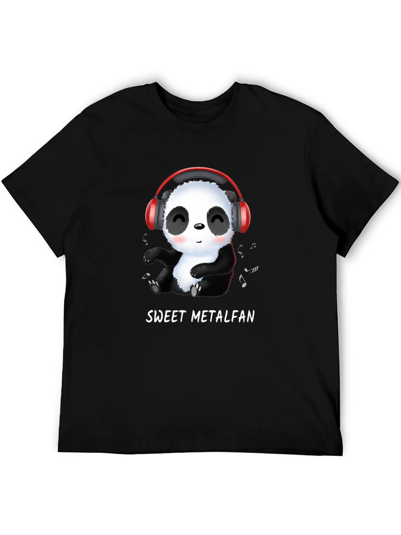 Show off your love for heavy metal and adorable pandas with this unique t-shirt. This eye-catching black tee features a cute panda wearing red headphones, surrounded by musical notes. The text "SWEET METALFAN" is printed below the design, adding a fun touch. Made from a soft, comfortable material, this shirt is perfect for casual wear, concerts, or just lounging around. This t-shirt is bound to be a conversation starter. Grab yours today and express your unique style!
