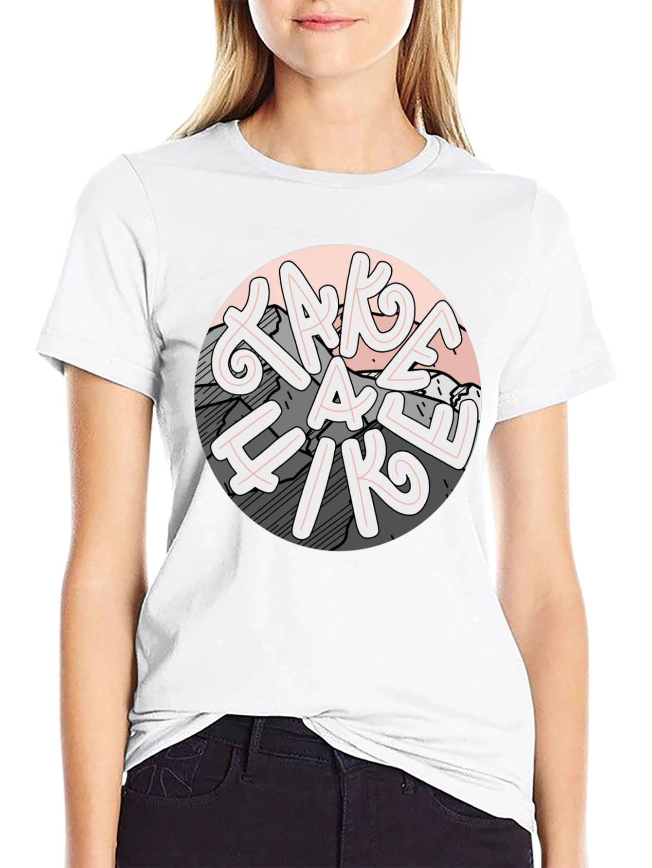 Show off your adventurous side with this stylish "Take a Hike" graphic tee. This casual black t-shirt features a bold, circular design with the phrase "Take a Hike" written in a unique, stylized font. The graphic includes a mountain range illustration and a contrasting color palette, giving it a modern and eye-catching look. Made from comfortable, breathable fabric, this shirt is perfect for everyday wear, outdoor adventures, or casual hangouts with friends. Express your love for the outdoors with this versatile and trendy t-shirt, making it an ideal gift for hikers, nature enthusiasts, or anyone who appreciates a cool, unique graphic tee. Get ready to hit the trails in style!