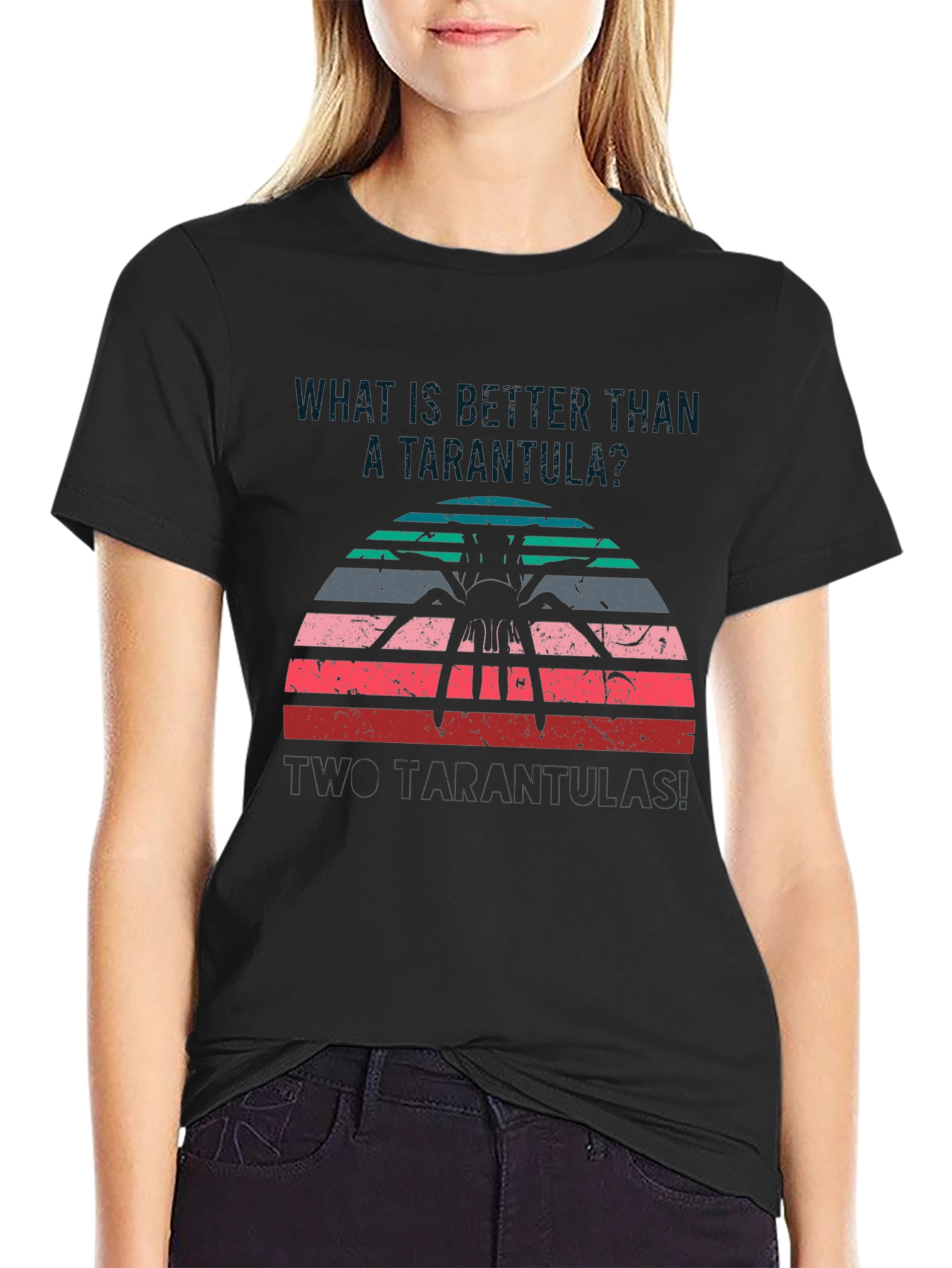 Show off your love for the creepy crawlies with this unique t-shirt! This black tee features a retro-style sunset graphic with a tarantula silhouette at its center. The text reads "What is better than a tarantula?" The shirt has a classic fit and short sleeves, making it perfect for casual wear. It is a soft and breathable material, making it comfortable enough for all-day wear. It's a great conversation starter and a fun way to express your unique personality. Wear it to your next reptile expo, casual Friday at work, or while lounging at home.