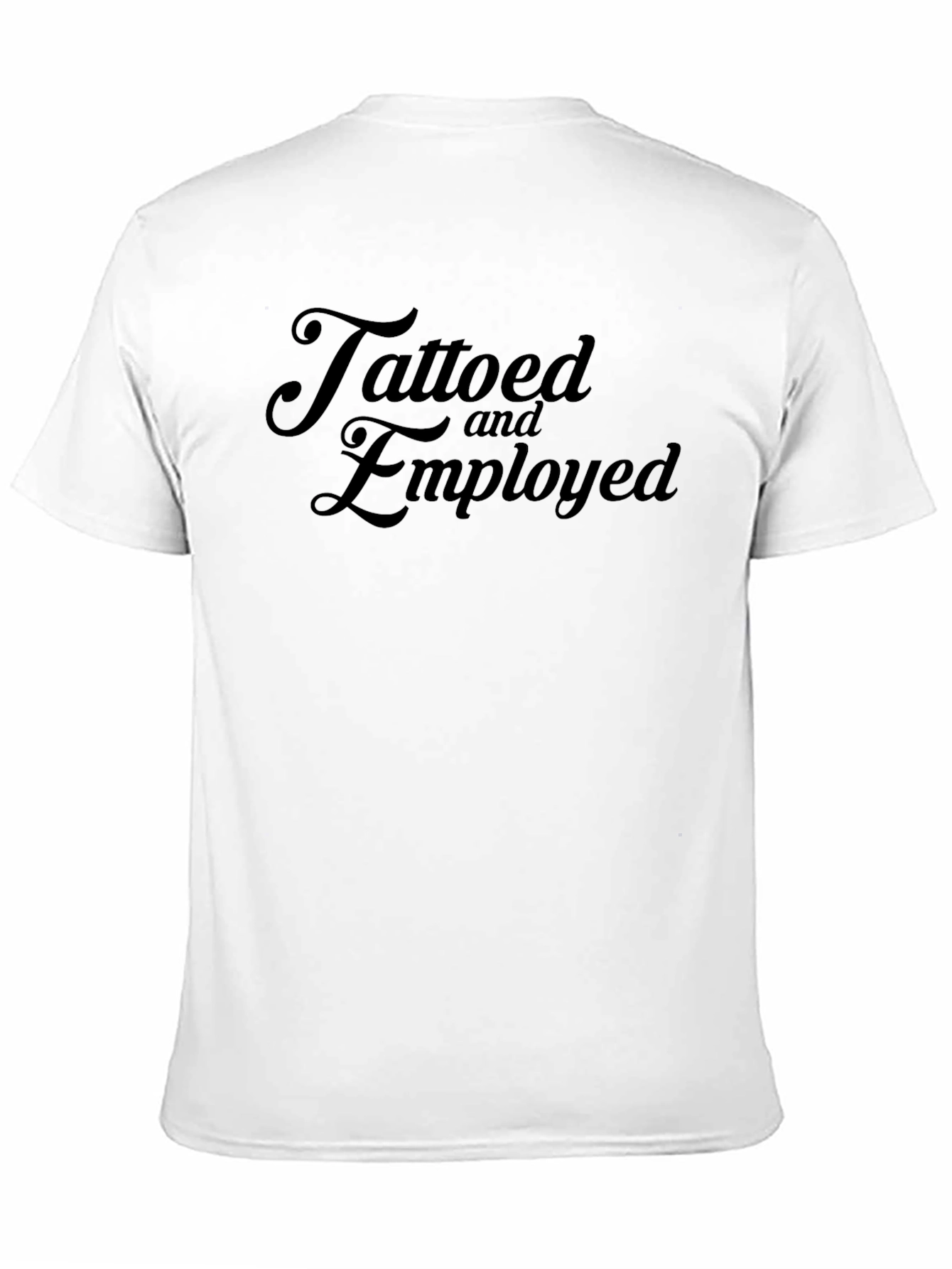 Show off your ink and ambition with this stylish black t-shirt. Featuring a bold "Tattooed and Employed" graphic, this tee is perfect for those who break stereotypes. The classic fit and soft fabric make it comfortable for all-day wear. Pair it with jeans or shorts for a casual look, or dress it up with a blazer for a more polished style. This tee is ideal for expressing individuality while maintaining a professional vibe. Great for work, weekends, or social gatherings, it's a versatile addition to any wardrobe. Embrace your unique style and make a statement with this must-have tee!