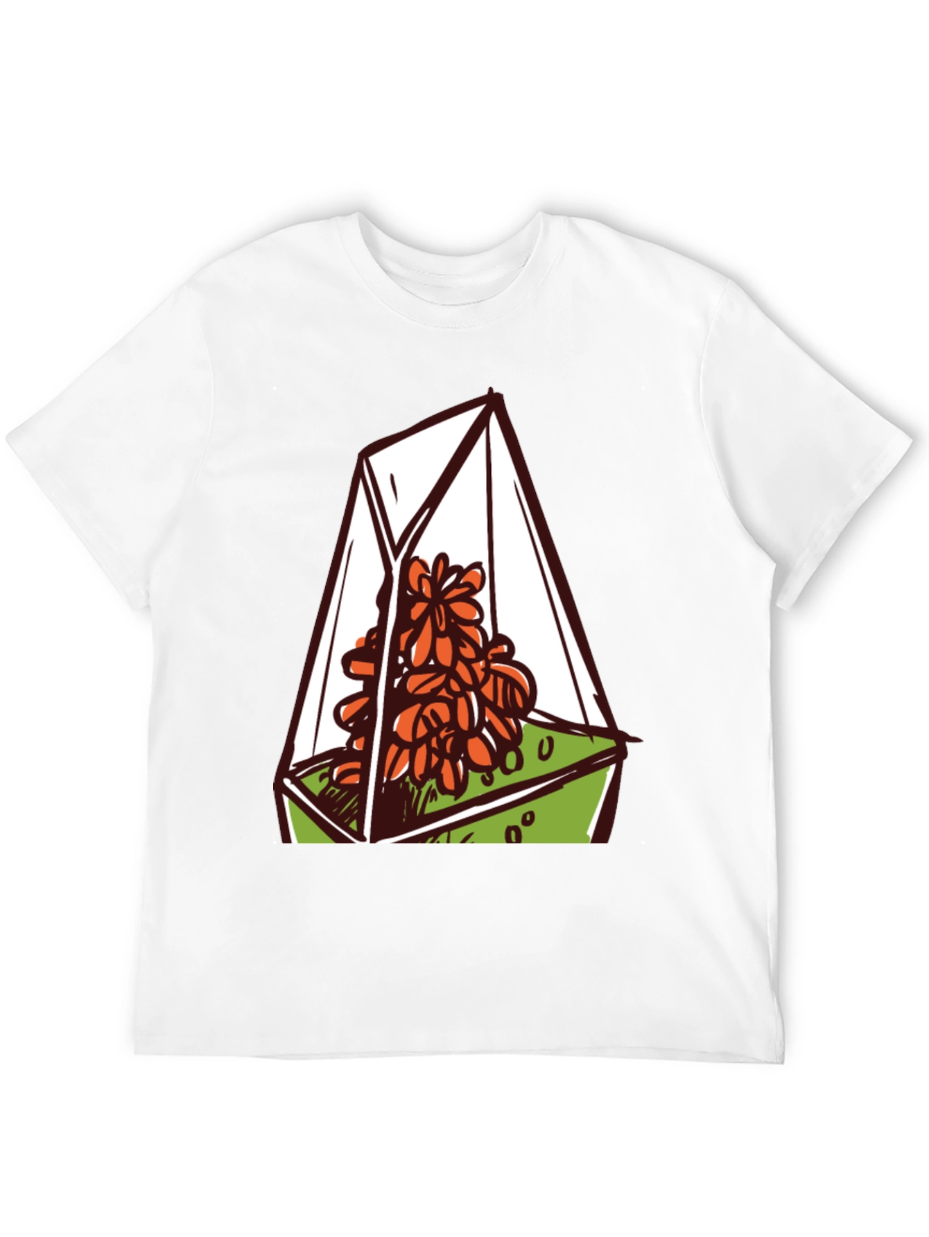 Show off your love for plants with this stylish graphic tee! This black t-shirt features a unique design of a terrarium, complete with vibrant orange plants enclosed in a geometric glass structure. The bold, eye-catching design is printed on a comfortable, soft fabric, making it perfect for everyday wear. Whether you're a gardening enthusiast or just appreciate modern design, this t-shirt is a great way to express your interests. Dress it up with a jacket or keep it casual with jeans - it's a versatile addition to any wardrobe.