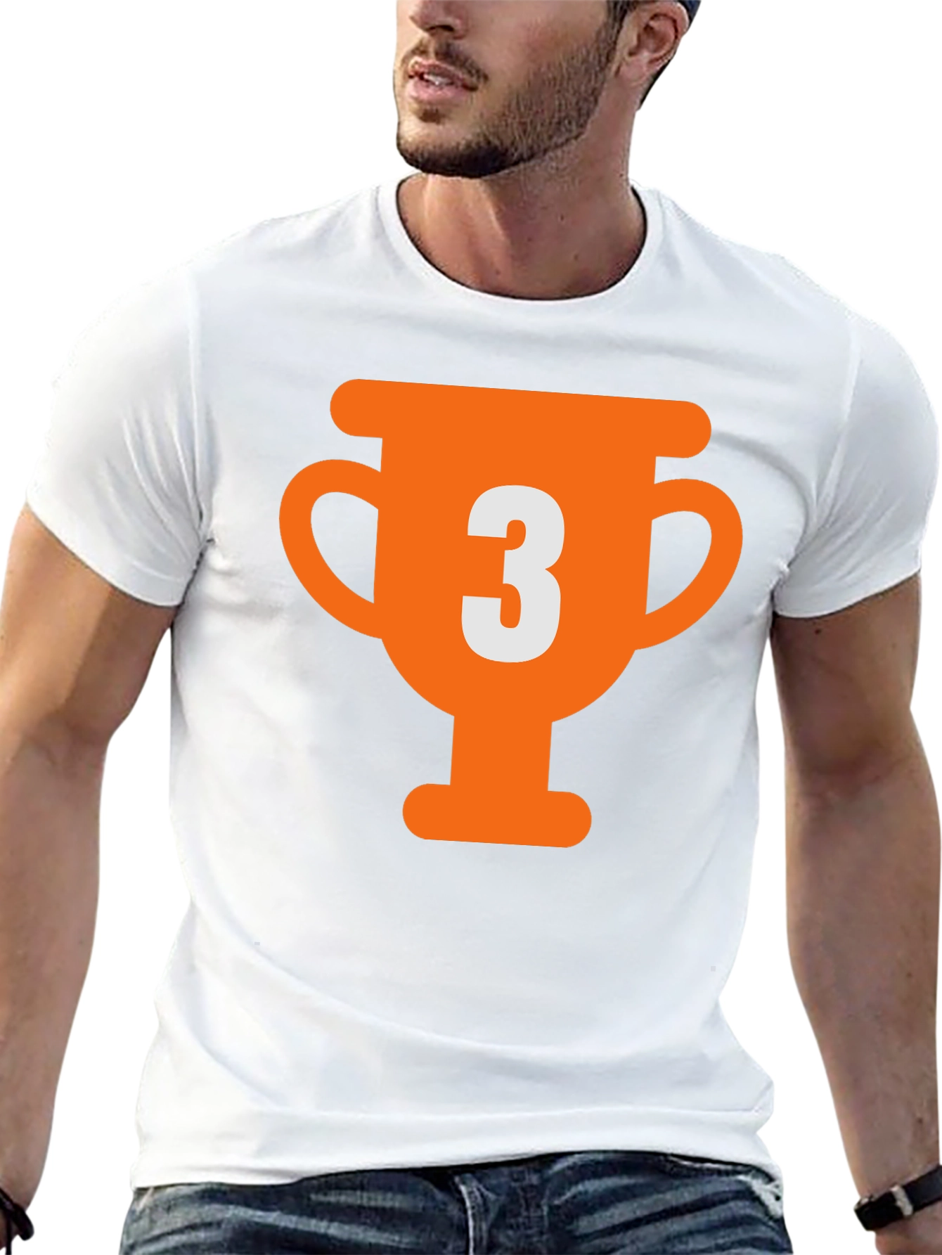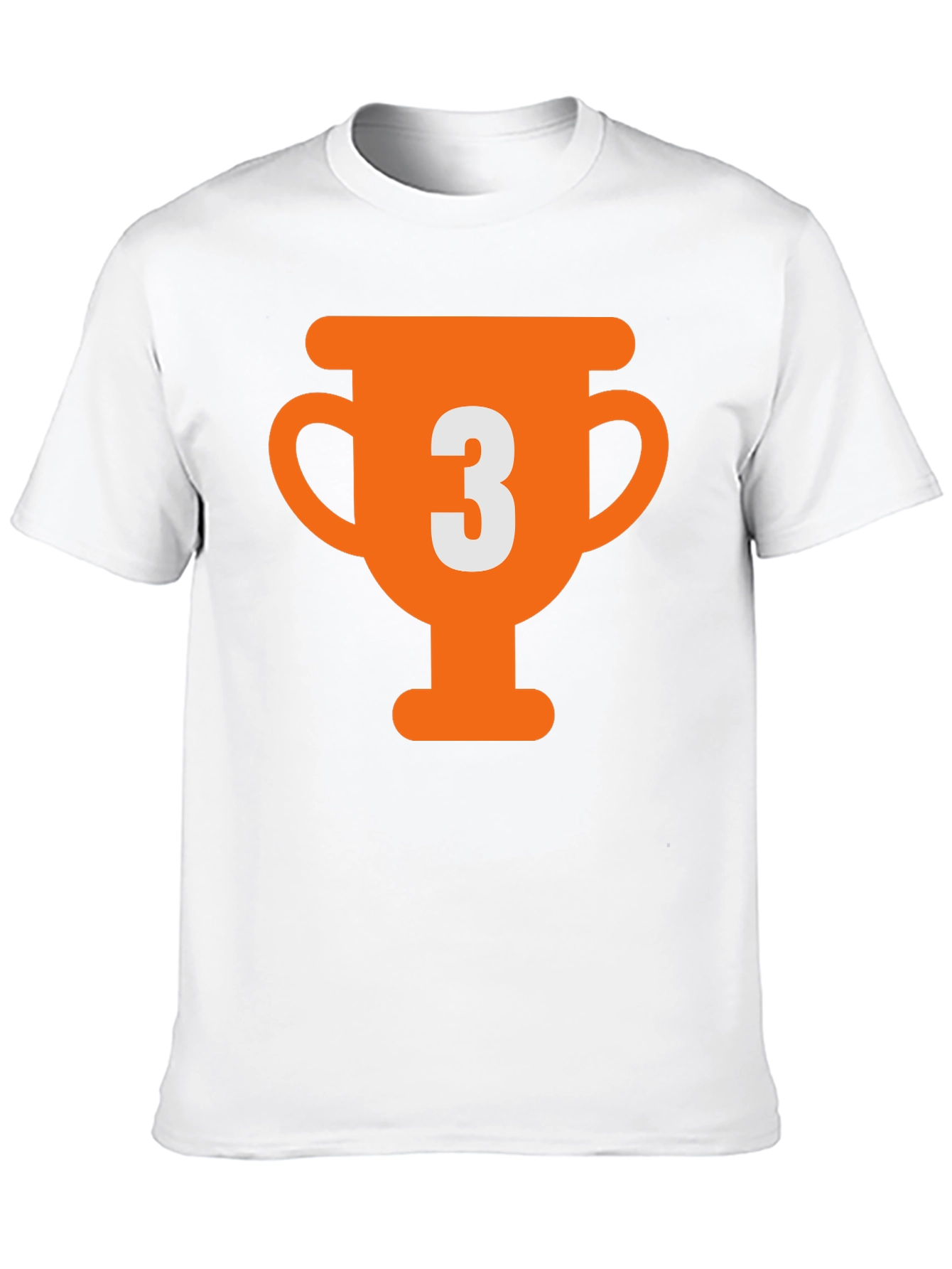 Show off your competitive spirit with this eye-catching black T-shirt. Featuring a bold, orange trophy graphic with a prominent number '3' inside, this tee is perfect for celebrating third-place victories or simply showcasing a playful attitude. The classic crew neck design and comfortable fit make it ideal for everyday wear. Made from soft, breathable fabric, it ensures all-day comfort. Whether you're heading to a casual outing, sporting event, or just lounging at home, this T-shirt is a stylish way to make a statement. Get yours today and wear your achievements with pride!