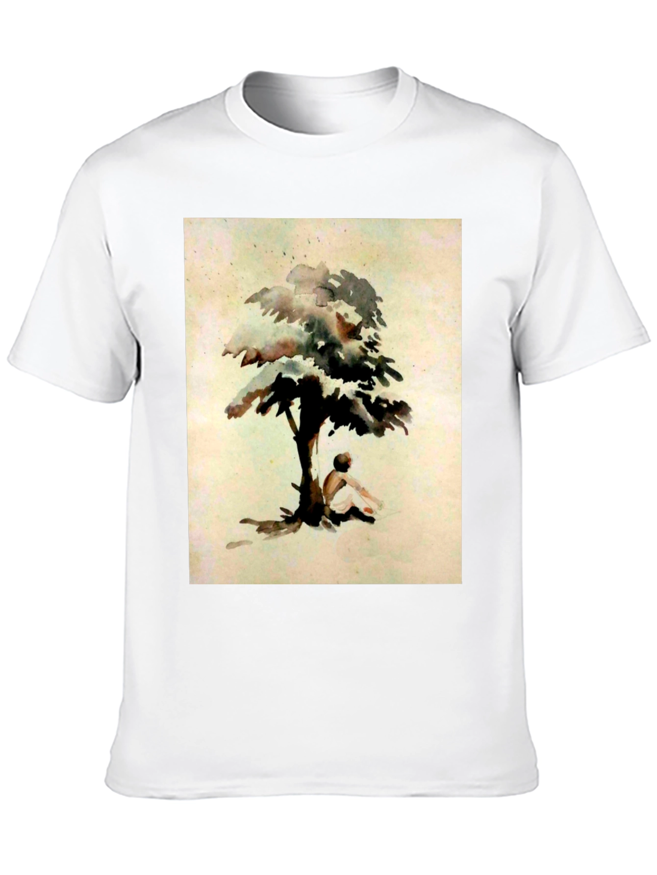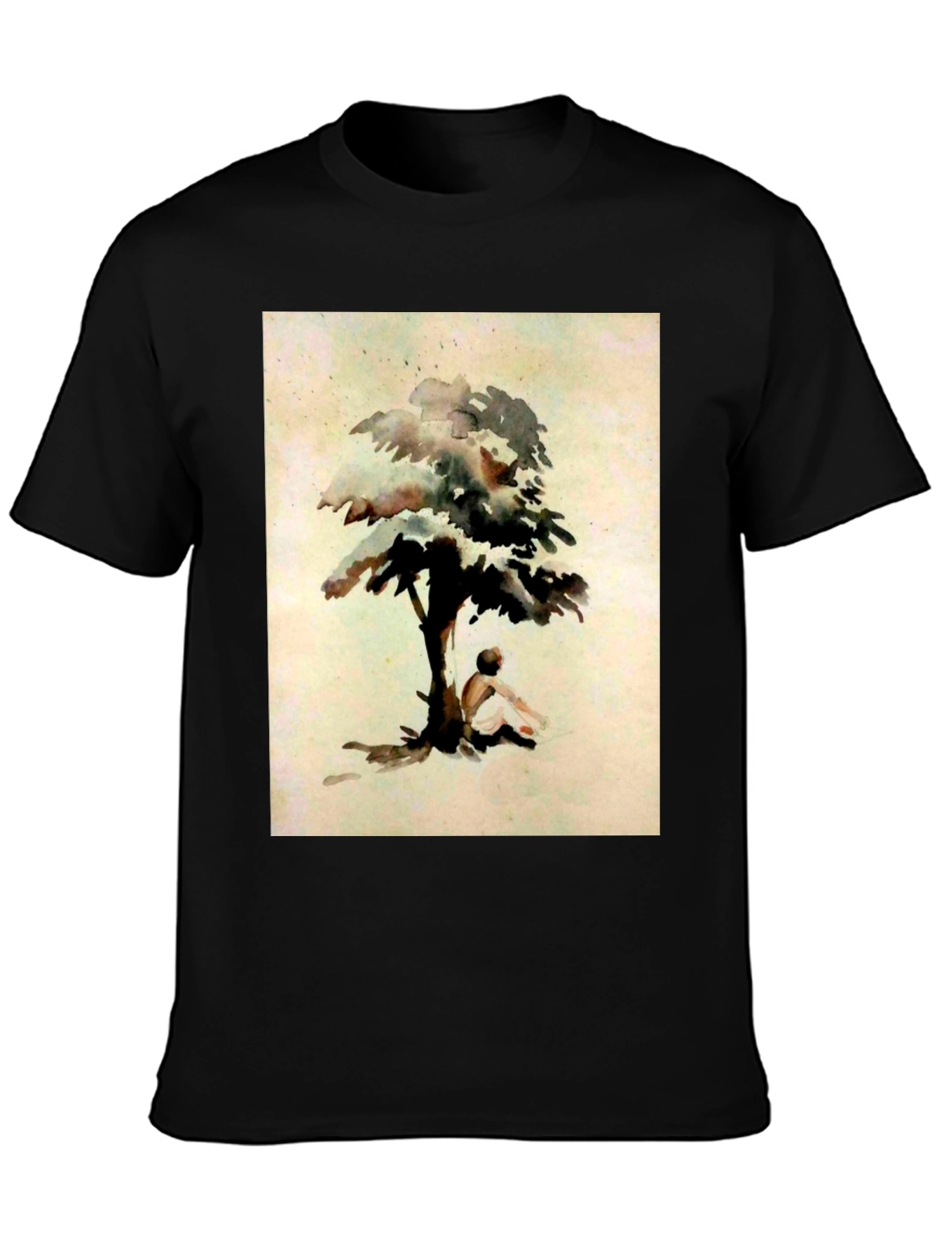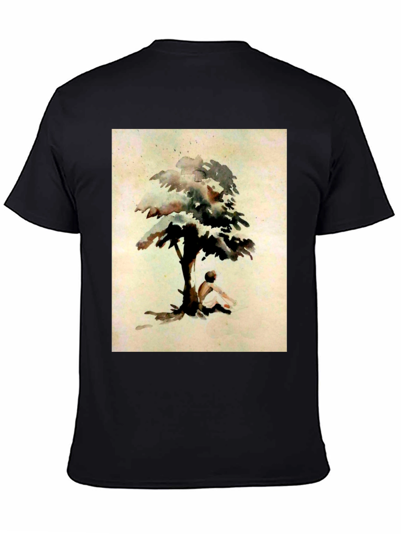 Express yourself with this unique graphic tee. Featuring an eye-catching artistic print of a person resting under a tree, this shirt is perfect for casual wear and making a statement. The soft, breathable fabric ensures all-day comfort. The classic crew neck and short sleeve design make it a versatile addition to any wardrobe. Wear it to your next outdoor adventure, casual event, or relaxing day at home. Available in black, this tee offers a stylish and comfortable fit. A perfect gift for art lovers and those who appreciate nature.