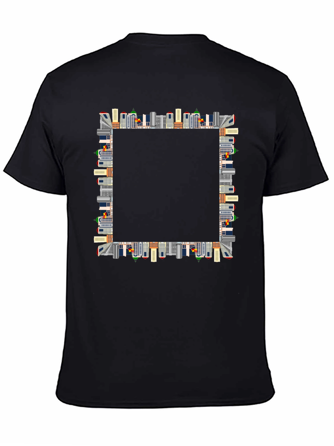 Show off your love for the city with this stylish black T-shirt. The eye-catching design features a unique cityscape graphic arranged in a square. Made from comfortable and durable materials, this shirt is perfect for everyday wear. The design makes a bold statement, and the classic black color ensures it pairs well with any outfit. Whether you're exploring urban jungles or hanging out with friends, this T-shirt is the perfect choice for those who appreciate modern design. Get yours today and stand out from the crowd!