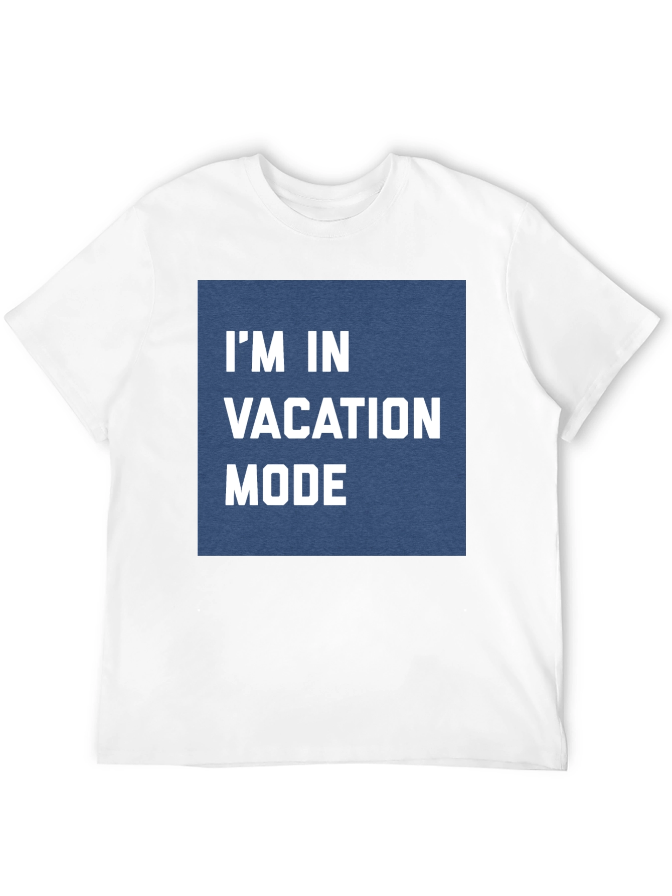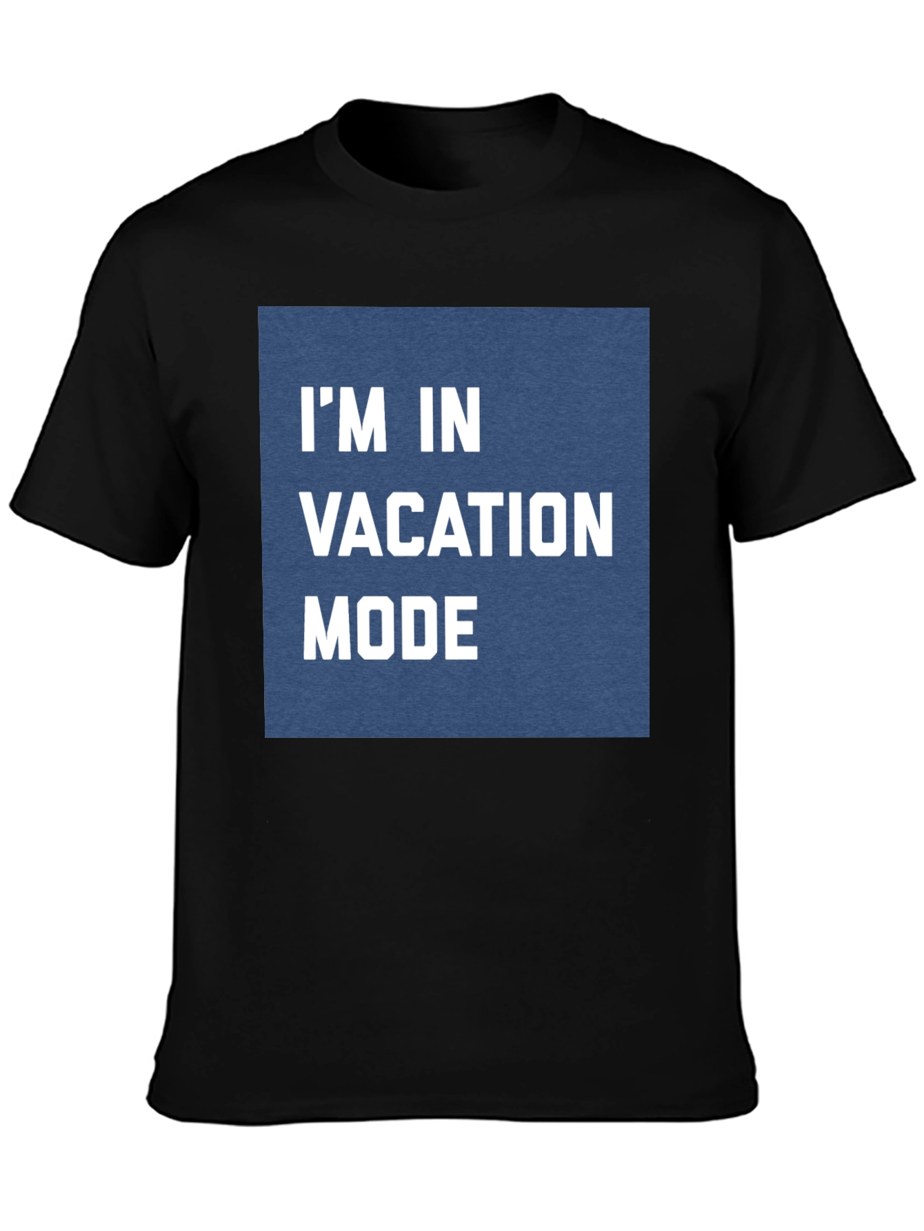 Embrace relaxation with this stylish "I'm In Vacation Mode" graphic t-shirt. Crafted from a soft, comfortable fabric, this tee features a bold, eye-catching design on a solid color backdrop. The classic fit and short sleeves make it perfect for warm weather getaways, casual outings, or lounging at home. Show off your carefree spirit and let everyone know you're in vacation mode! Whether you're hitting the beach, exploring a new city, or simply unwinding by the pool, this t-shirt is the ideal choice for a relaxed and stylish look. Get yours today and start enjoying your well-deserved break.