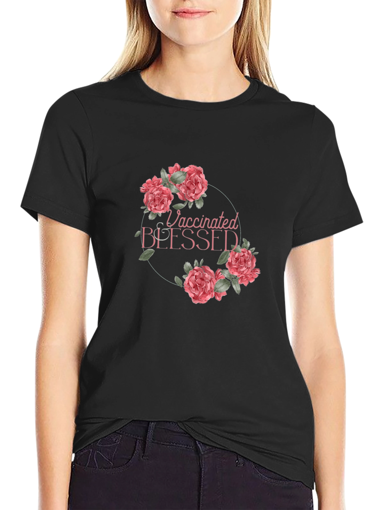 Show off your vaccinated status in style with this unique "Vaccinated Blessed" T-shirt! The design features a delicate floral wreath surrounding the text, making it both fashionable and meaningful. The T-shirt appears to be made from a soft, comfortable material, ensuring all-day wearability. This tee is perfect for everyday wear, social gatherings, or as a conversation starter. Express your health-conscious and grateful outlook with this eye-catching piece. It also makes a thoughtful gift for friends and family who have been vaccinated. Get yours today and celebrate being vaccinated and blessed!