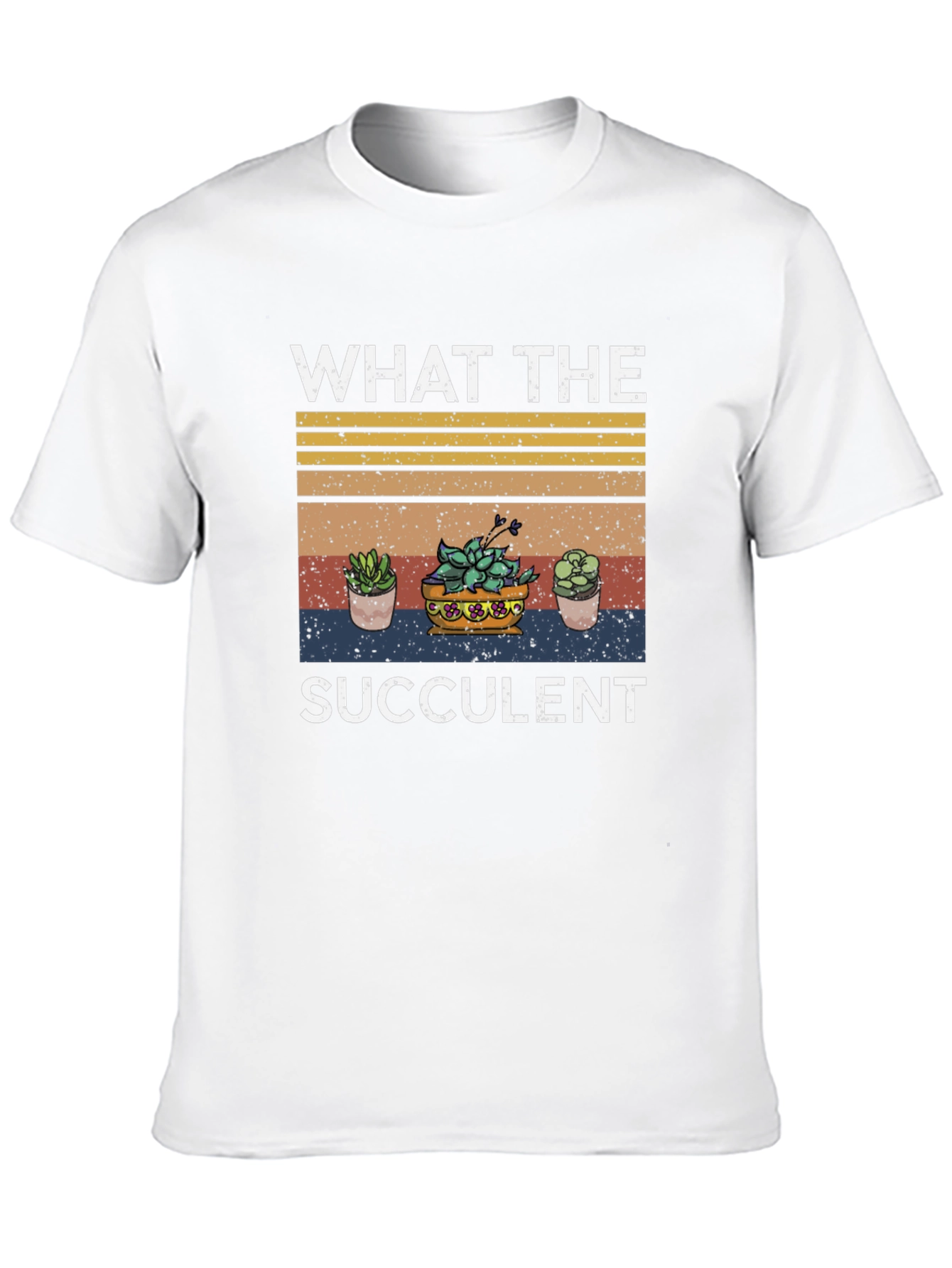 Show off your love for plants with this trendy 'What The Succulent' t-shirt. This classic black tee features a fun, eye-catching graphic with various succulents set against a vintage-inspired striped background. The design is printed with high-quality inks for a vibrant and long-lasting image. Made from a comfortable and breathable fabric, this shirt is perfect for casual wear, gardening days, or as a unique gift for the plant enthusiast in your life. Express your passion for succulents in style!