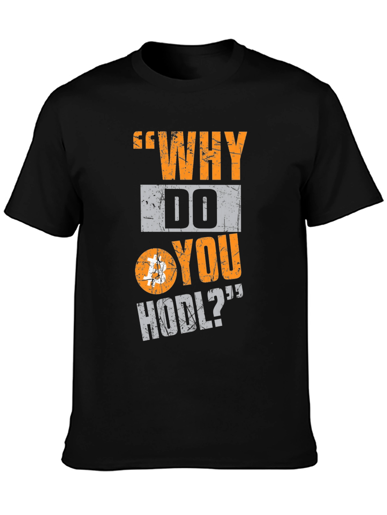 Show your love for cryptocurrency with this unique "Why Do You HODL?" t-shirt. The shirt features a distressed graphic design with the phrase and a Bitcoin symbol, making it a must-have for any crypto enthusiast. Made from comfortable materials, this short-sleeve tee is perfect for casual wear, crypto meetups, or as a gift for your favorite Bitcoin investor. The design is printed on a classic black t-shirt, ensuring it will match any outfit. Express your passion for the future of finance and start conversations about Bitcoin with this eye-catching tee.