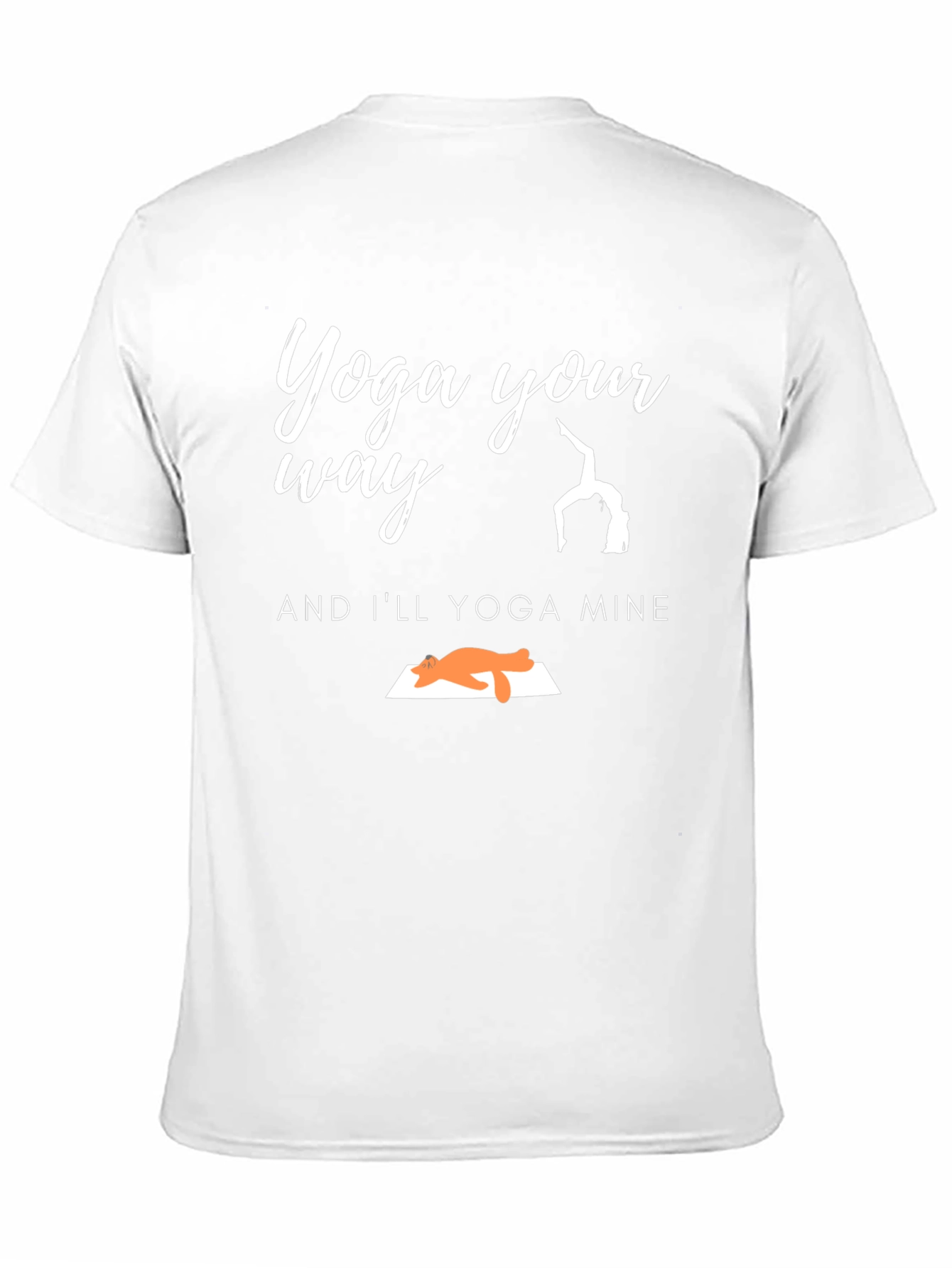 Find your zen in this stylish graphic t-shirt! Made from a soft, breathable fabric (assumed), this tee features a humorous design with the phrase "Yoga Your Way and I'll Yoga Mine", perfect for yoga enthusiasts and cat lovers alike. The design showcases two different yoga styles, one human and one feline, adding a touch of whimsy. The classic fit and soft fabric make it ideal for everyday wear, yoga class, or lounging at home. Show off your playful side with this unique and comfortable tee!